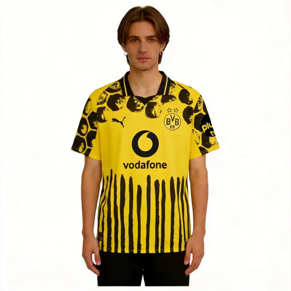 • La Maglia Borussia Dortmund KidSuper Uomo 2025 2026 è pensata per chi vive nell’emozione del Signal Iduna Park e vuole portare questa energia ovunque. Che si tratti dell’ultima maglia da casa o di un design creativo da casa, queste maglie ti collegano a una squadra basata sul giovane genio e sul calcio offensivo.