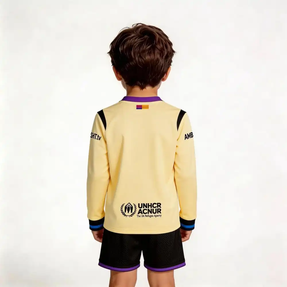 Category: Barcelona Bambino Tags: 2025/2026, Away, Bambino, Giallo, La Liga, Maniche Lunghe, Personalizzato