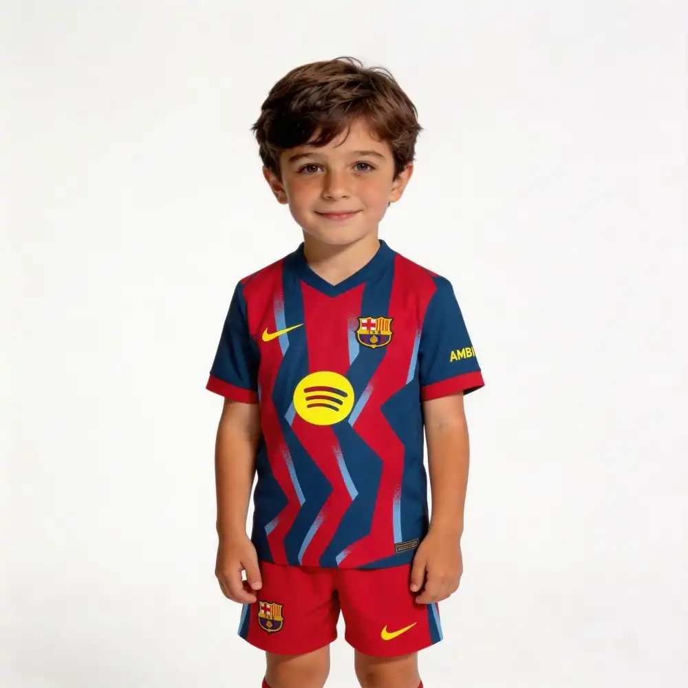 Category: Barcelona Bambino Tags: 2025/2026, Bambino, Blu, Fourth, La Liga, Personalizzato, Rosso