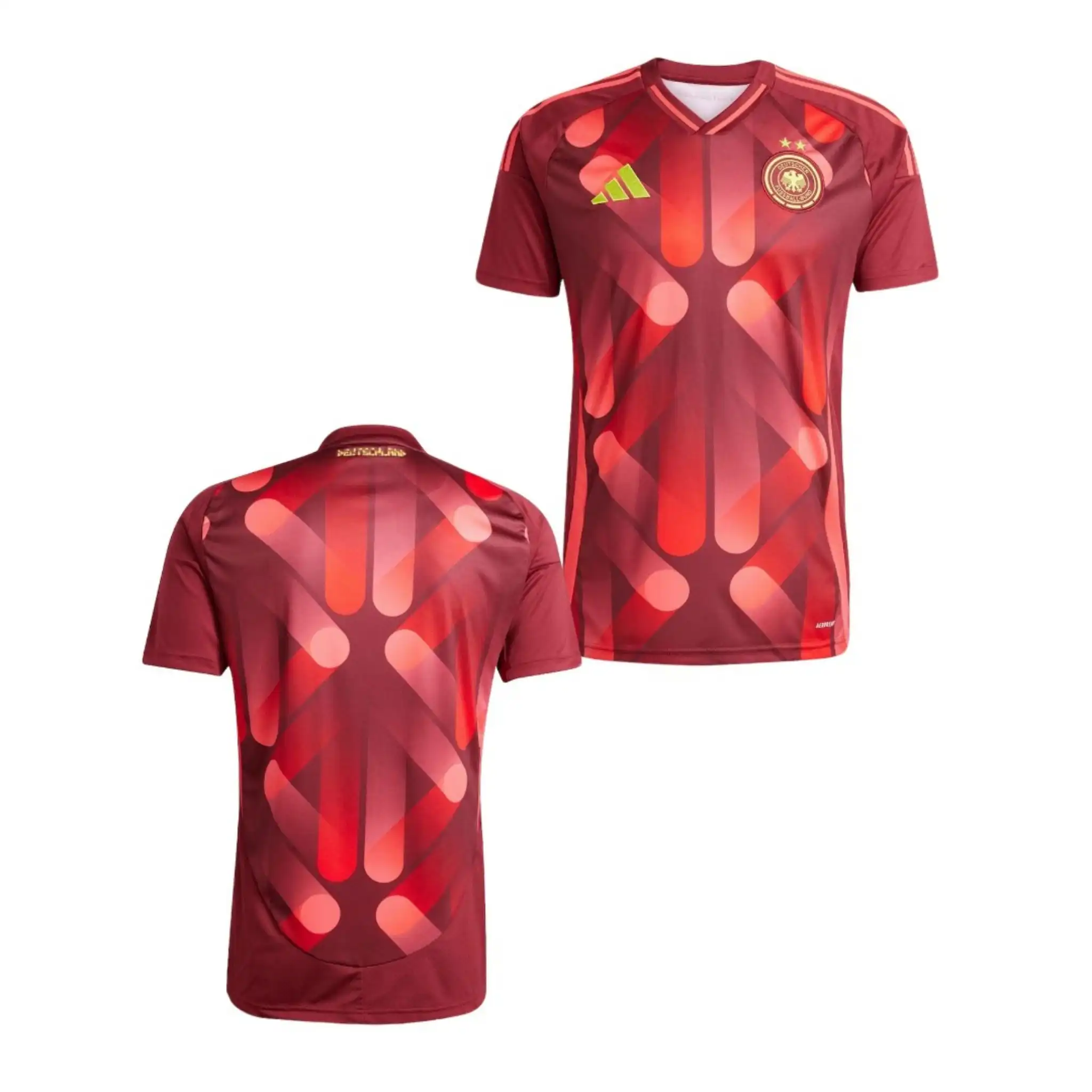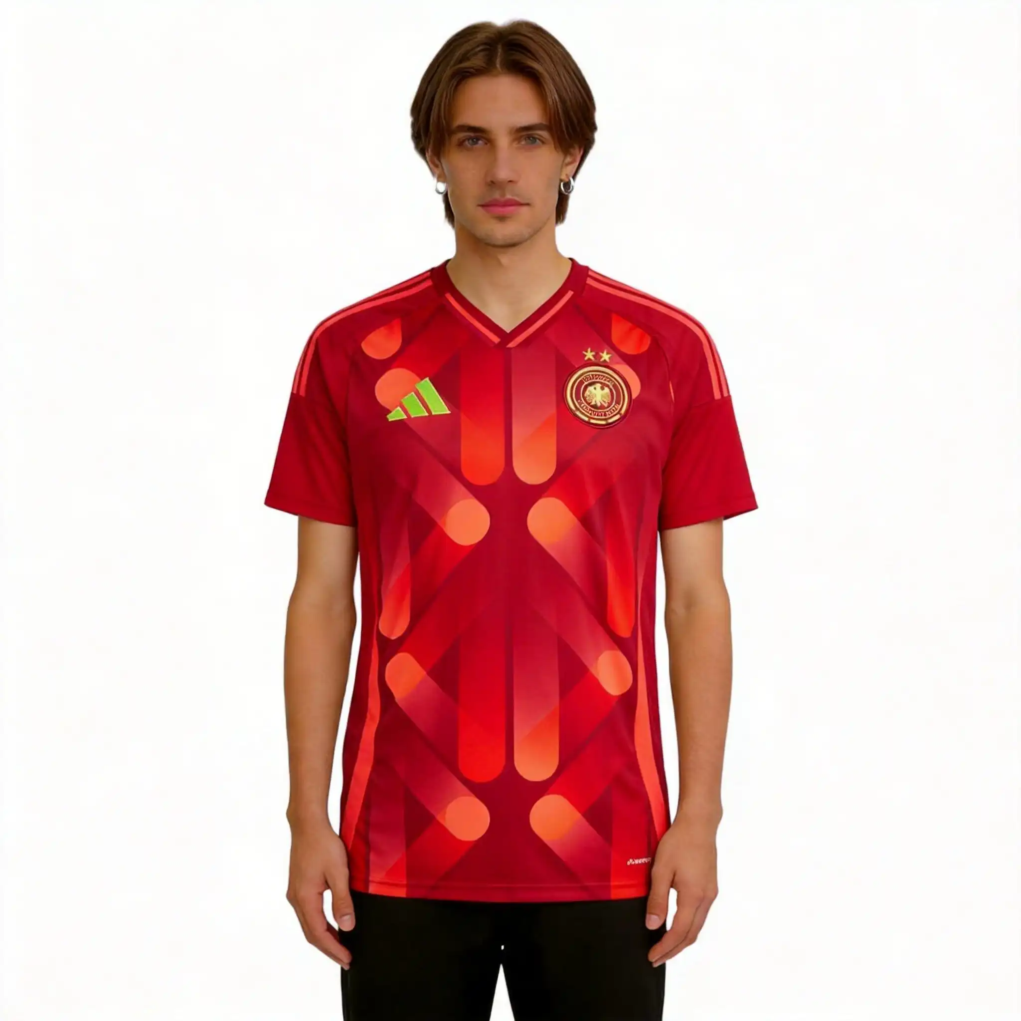 • Questa Maglia Germania Gara Away Uomo 2025 ha come fulcro il design rigoroso tedesco, fondendo elementi iconici delle numerose vittorie mondiali. Il motivo geometrico a V sul petto omaggia i momenti indimenticabili del campo, mentre il logo a quattro stelle incisa celebra gli anni leggendari dei trionfi, con un valore sia collezionistico che di stile.