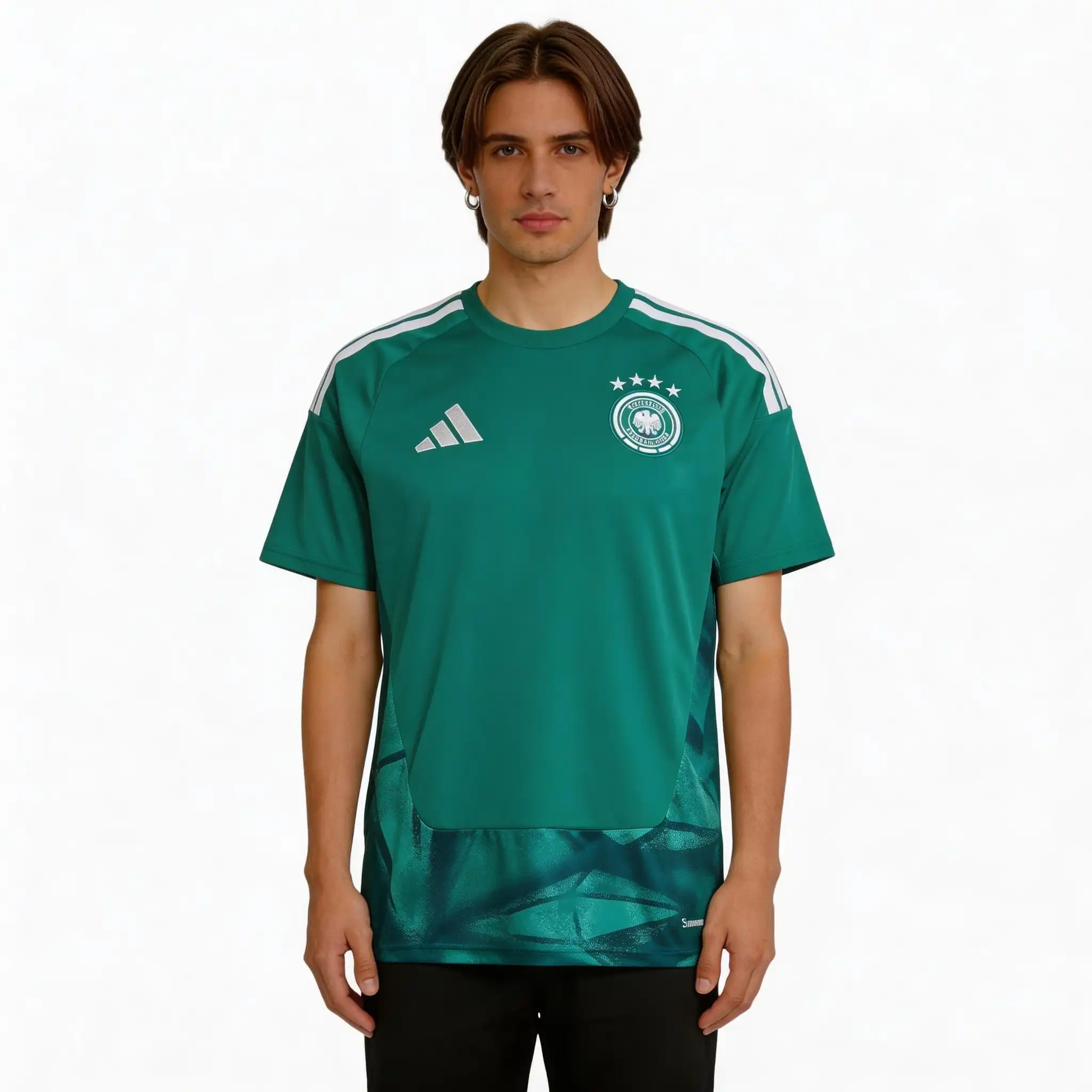 • Questa Maglia Germania Portiere Gara Home Uomo 2026 ha come fulcro il design rigoroso tedesco, fondendo elementi iconici delle numerose vittorie mondiali. Il motivo geometrico a V sul petto omaggia i momenti indimenticabili del campo, mentre il logo a quattro stelle incisa celebra gli anni leggendari dei trionfi, con un valore sia collezionistico che di stile.