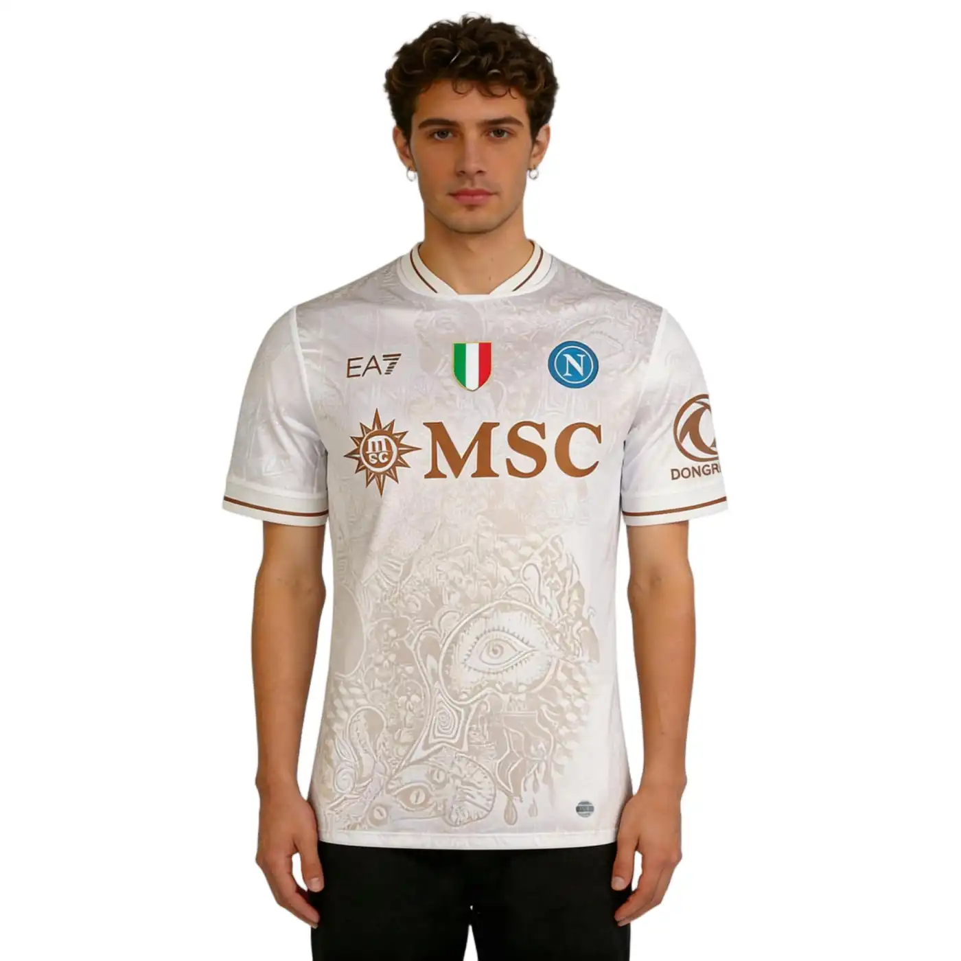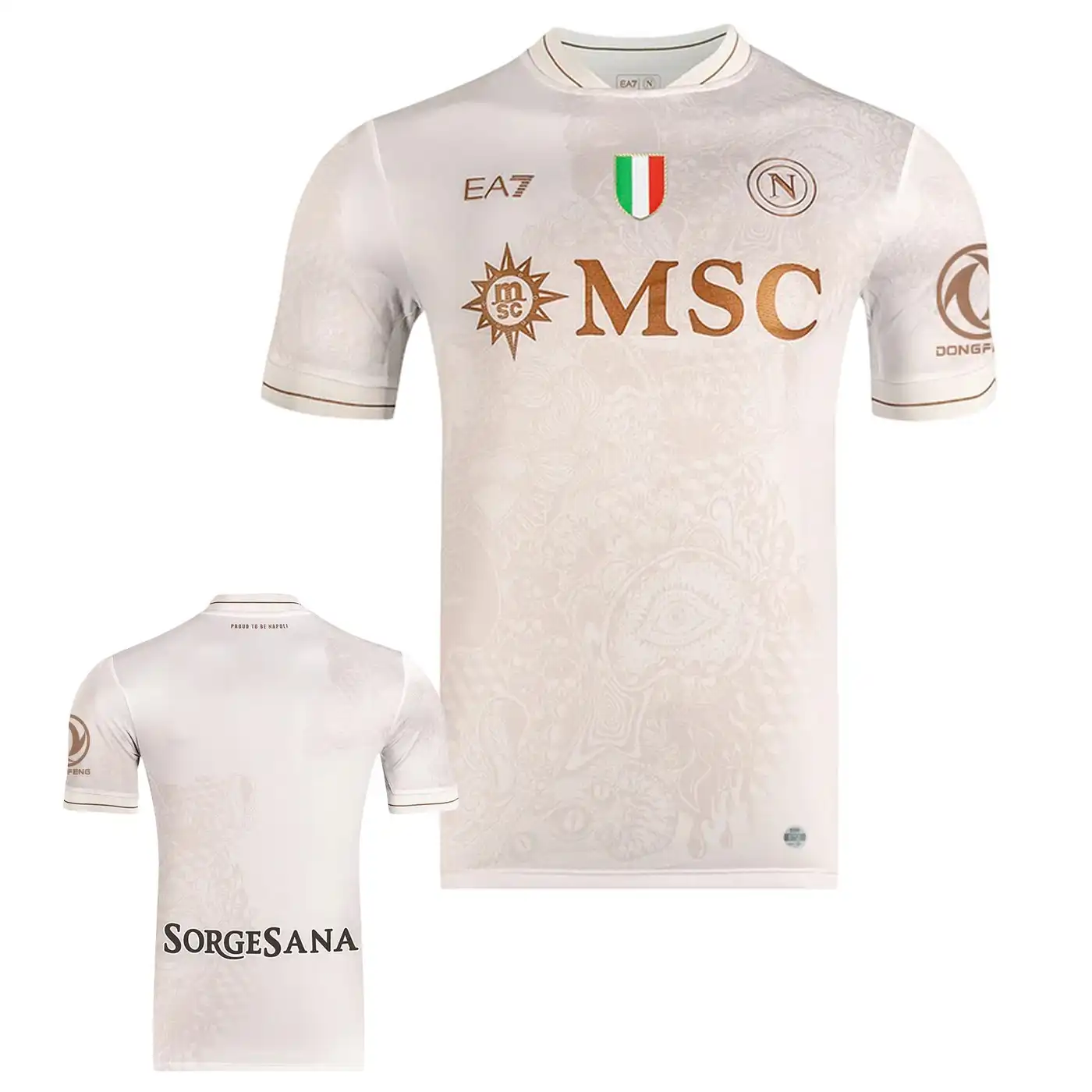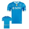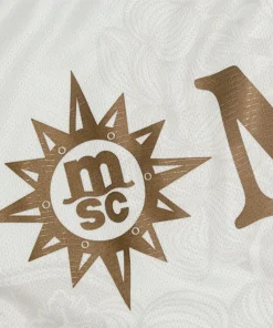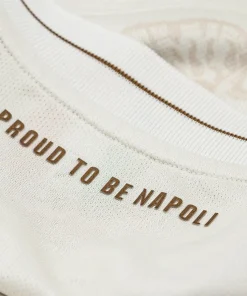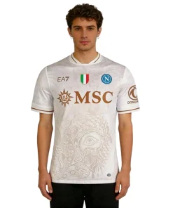 • La maglia della squadra, composta al 90% da poliestere e al 10% da elastam, presenta un motivo raffinato con l’iconico “N” napoletano integrato nel tessuto, un’espressione di identità e appartenenza. Le maniche offrono un taglio aderente ma comodo, progettato per garantire aerodinamica e libertà di movimento. Per rendere il prodotto unico e autentico, la maglia è completata con un hologram digitale a impronta digitale al fondo, garantendo l’originalità.