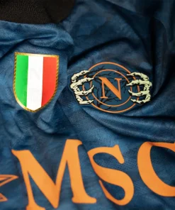 • La maglia della squadra, composta al 90% da poliestere e al 10% da elastam, presenta un motivo raffinato con l’iconico “N” napoletano integrato nel tessuto, un’espressione di identità e appartenenza. Le maniche offrono un taglio aderente ma comodo, progettato per garantire aerodinamica e libertà di movimento. Per rendere il prodotto unico e autentico, la maglia è completata con un hologram digitale a impronta digitale al fondo, garantendo l’originalità.