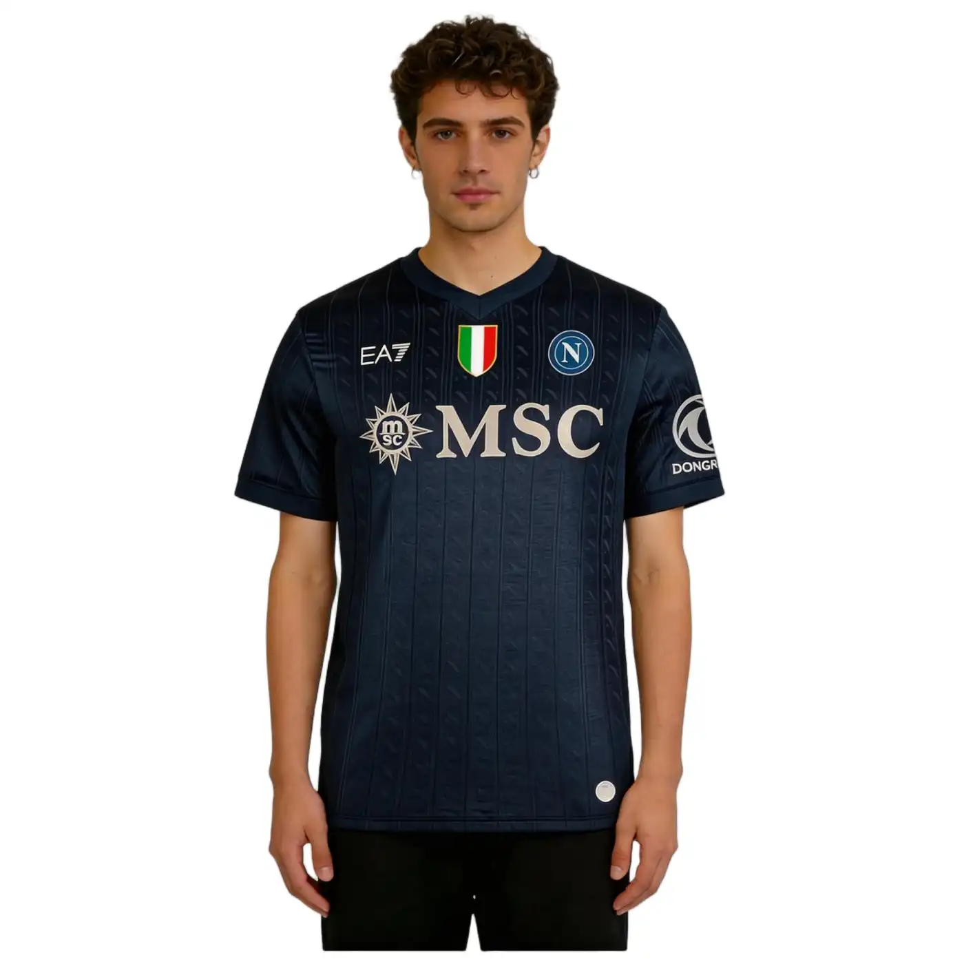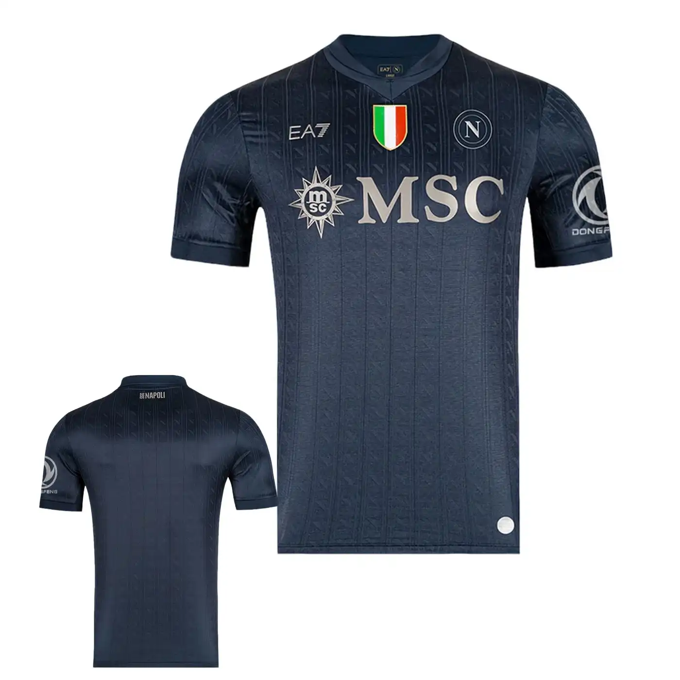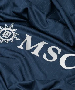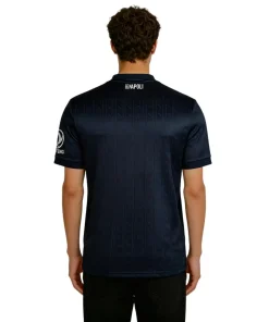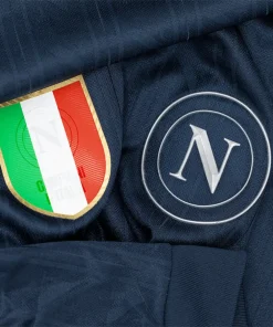 • La maglia della squadra, composta al 90% da poliestere e al 10% da elastam, presenta un motivo raffinato con l’iconico “N” napoletano integrato nel tessuto, un’espressione di identità e appartenenza. Le maniche offrono un taglio aderente ma comodo, progettato per garantire aerodinamica e libertà di movimento. Per rendere il prodotto unico e autentico, la maglia è completata con un hologram digitale a impronta digitale al fondo, garantendo l’originalità.