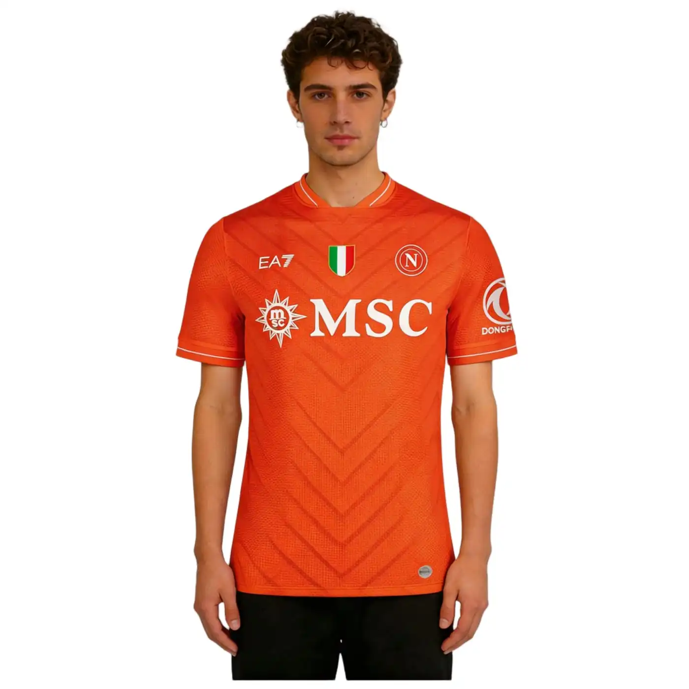 • La maglia della squadra, composta al 90% da poliestere e al 10% da elastam, presenta un motivo raffinato con l’iconico “N” napoletano integrato nel tessuto, un’espressione di identità e appartenenza. Le maniche offrono un taglio aderente ma comodo, progettato per garantire aerodinamica e libertà di movimento. Per rendere il prodotto unico e autentico, la maglia è completata con un hologram digitale a impronta digitale al fondo, garantendo l’originalità.